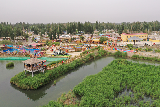 在墨玉县拉里昆湿地水系区,英吾斯塘村、拉里昆村、乌尔其村等诸多依水村依托湿地地表水积极发展乡村旅游,许多村民开起乡村民宿、农家乐,卖起农家饭、土特产,实现资源变资产、文化变收入。